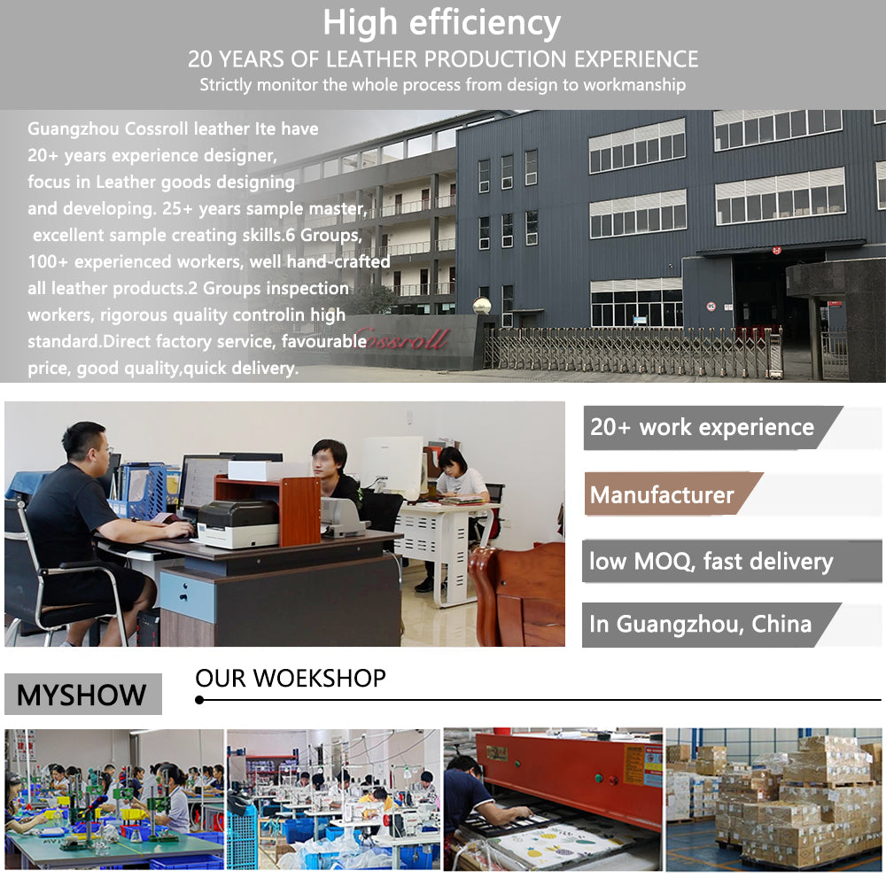 COSSROLL Leather (Guangzhou) Co., Ltd. was established in 2002, is a large leather goods and luggage enterprise integrating R&D, production and sales, mainly engaged in wallets, coin purses, card cases, cell phone bags, handbags and other products.