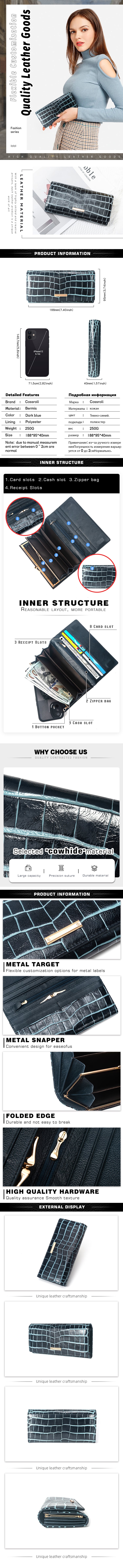 Ultra-thin genuine leather wallet long 2024 new model cowhide crocodile texture large capacity multi-card card holder