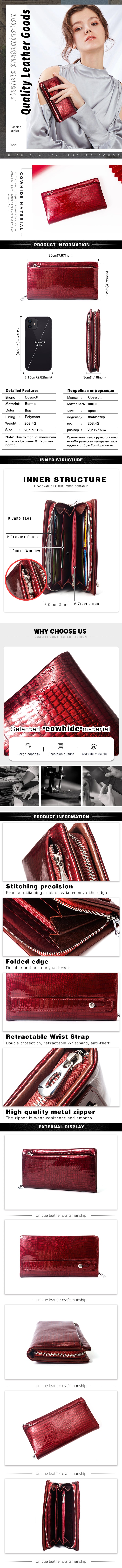 High-grade crocodile long wallet temperament 2024 new leather large capacity multi-layer clip mobile phone