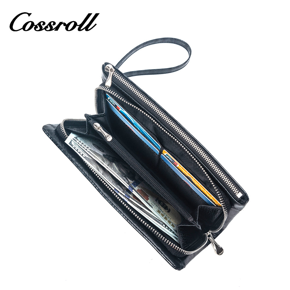 Factory processing custom cross-border new leather women's purse long zipper cowhide women's foreign trade handbag custom