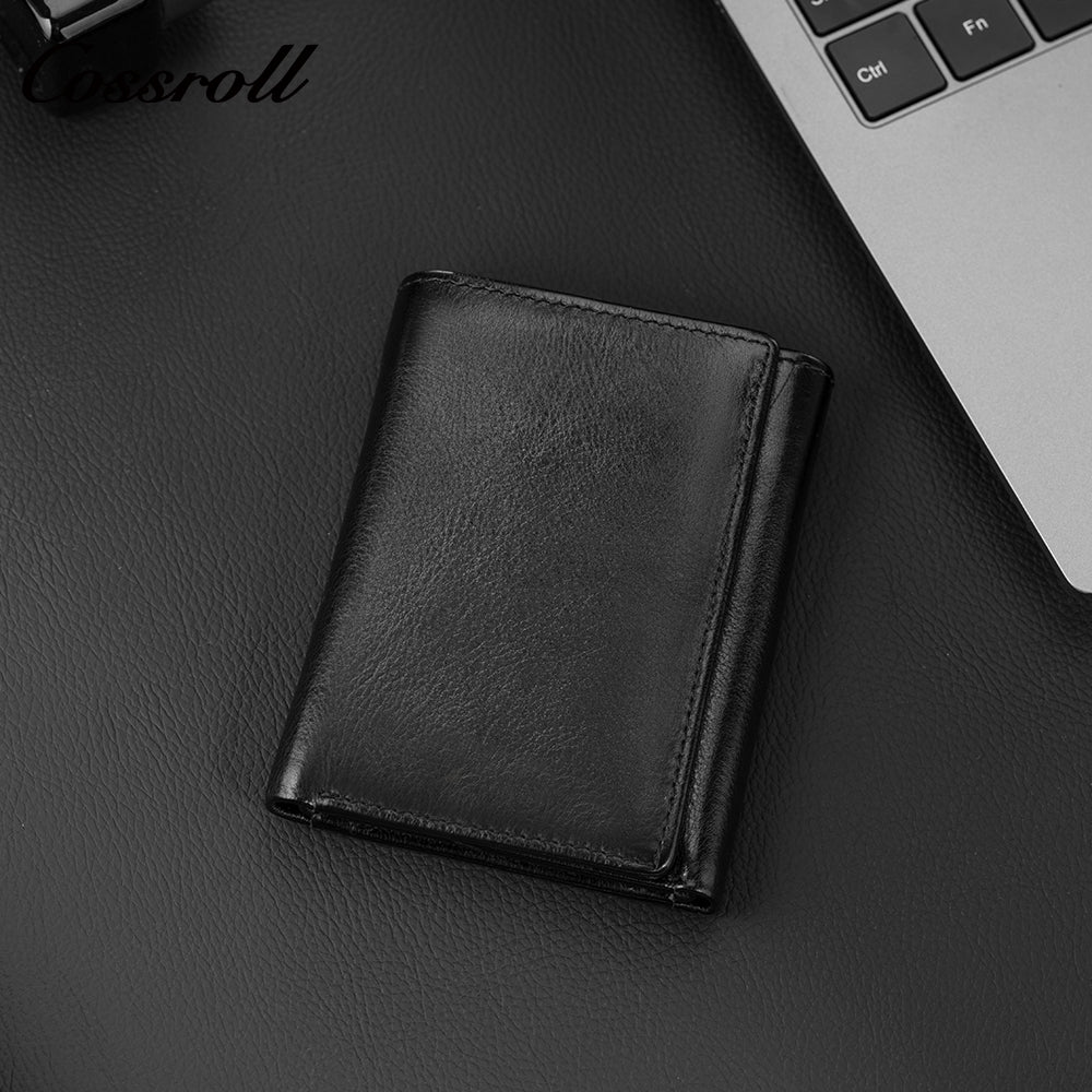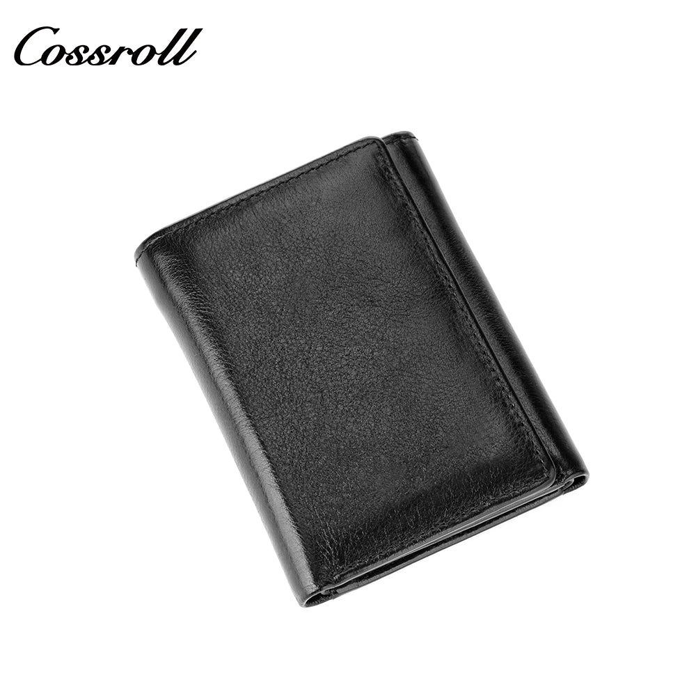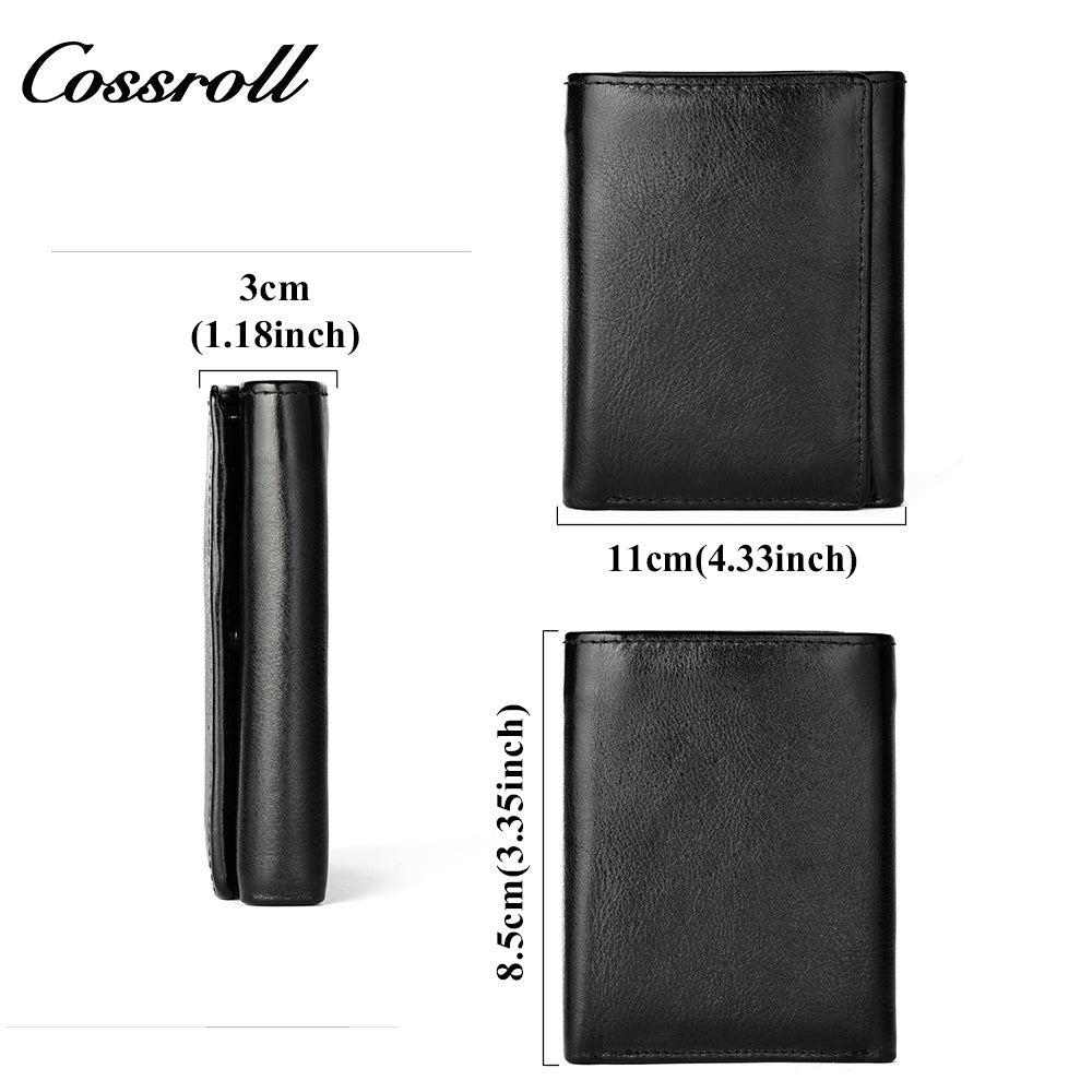 Genuine Leather Wallet Men's Head Layer Cowhide Black Trifold Wallet with Coin Position