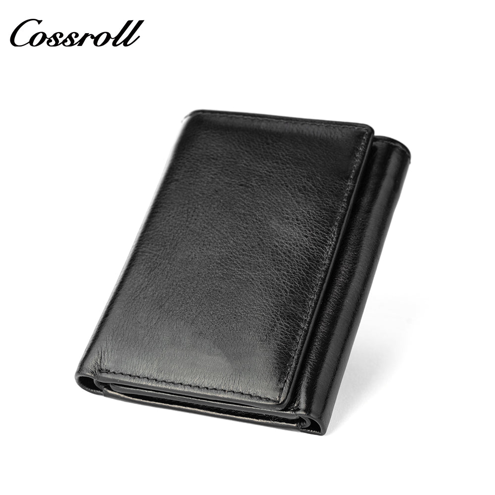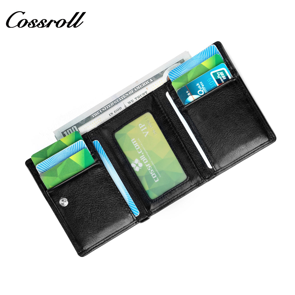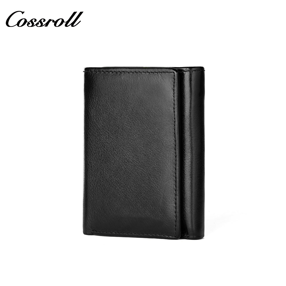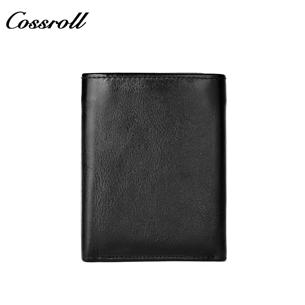 Genuine Leather Wallet Men's Head Layer Cowhide Black Trifold Wallet with Coin Position