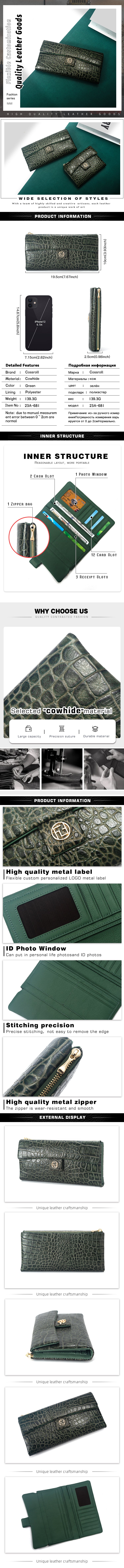 Factory Direct Sale High Quality luxury genuine leather womens crocodile texture Genuine Leather