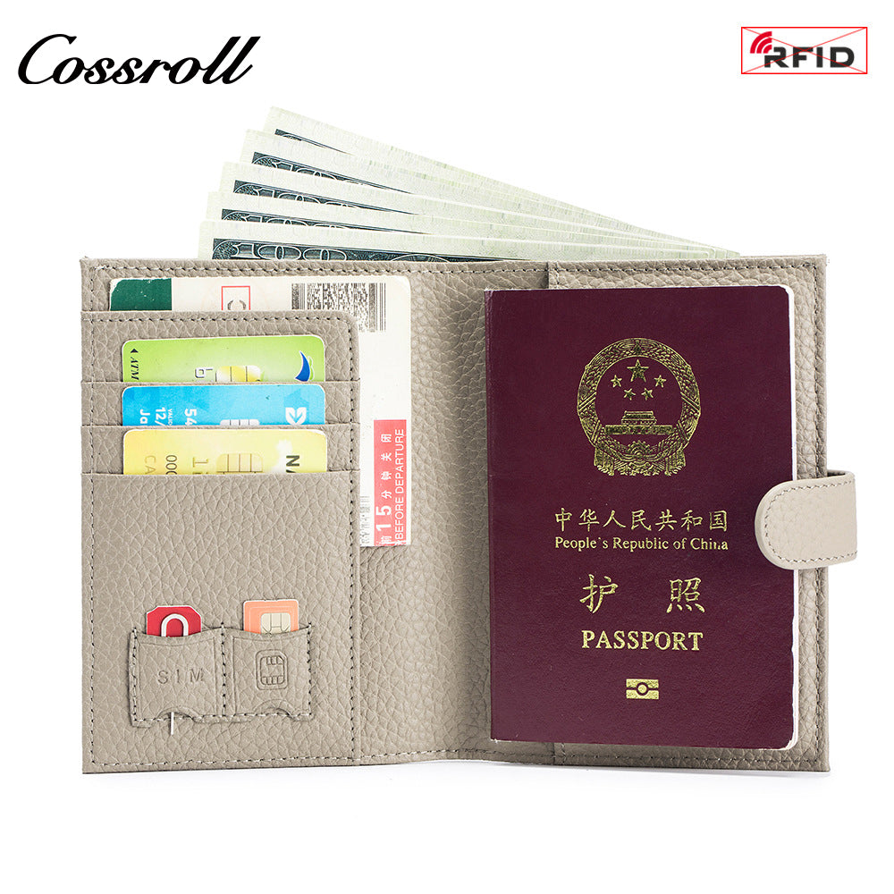 rfid leather ultra-thin passport wallet multi-functional anti-theft brush document protection cover cowhide one