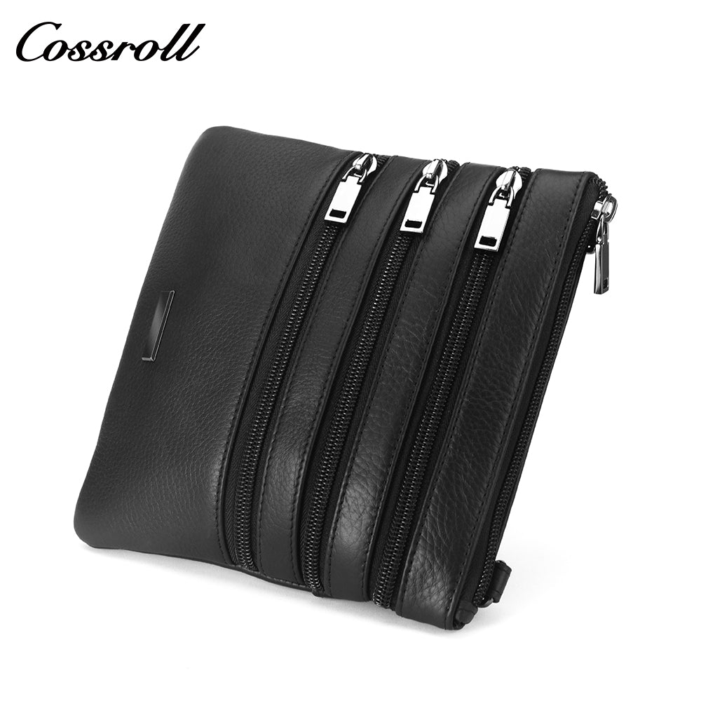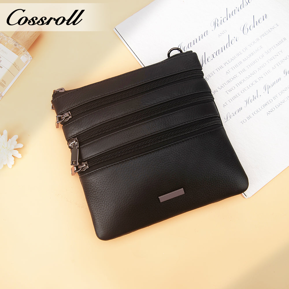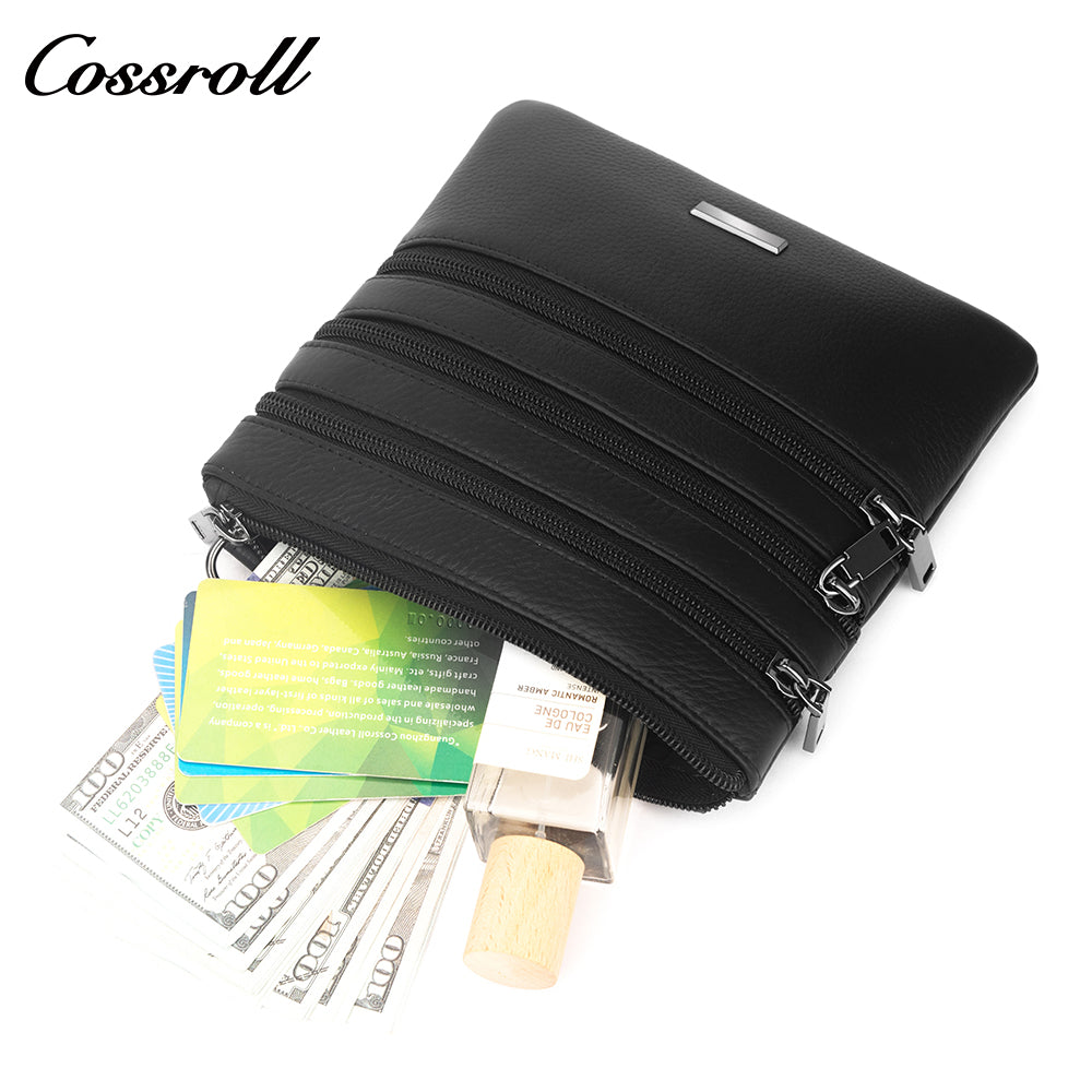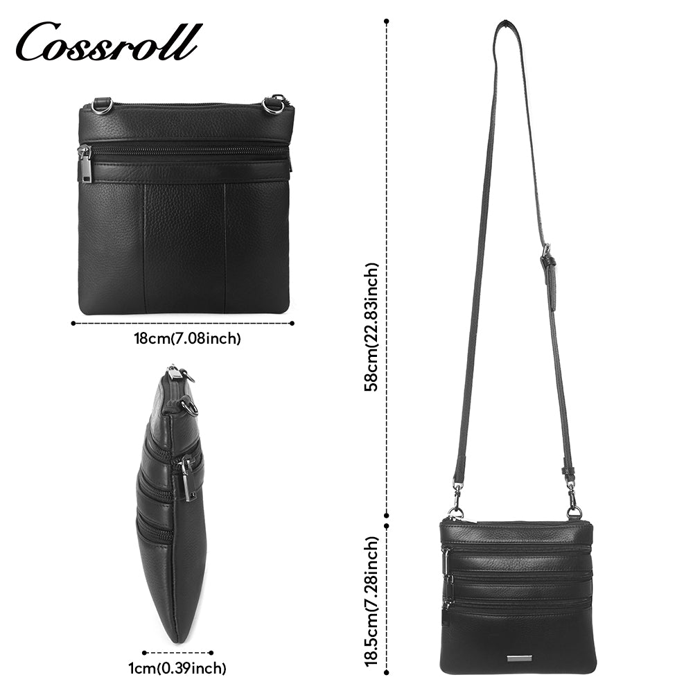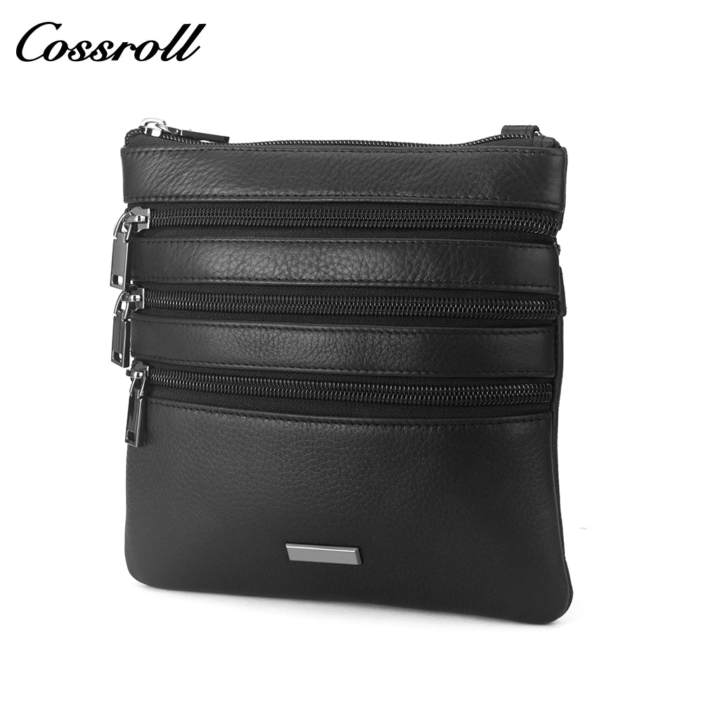 New Genuine Leather Unisex Crossbody Three Zipper MiniShoulder Bag Cowhide Personalized Small Purse