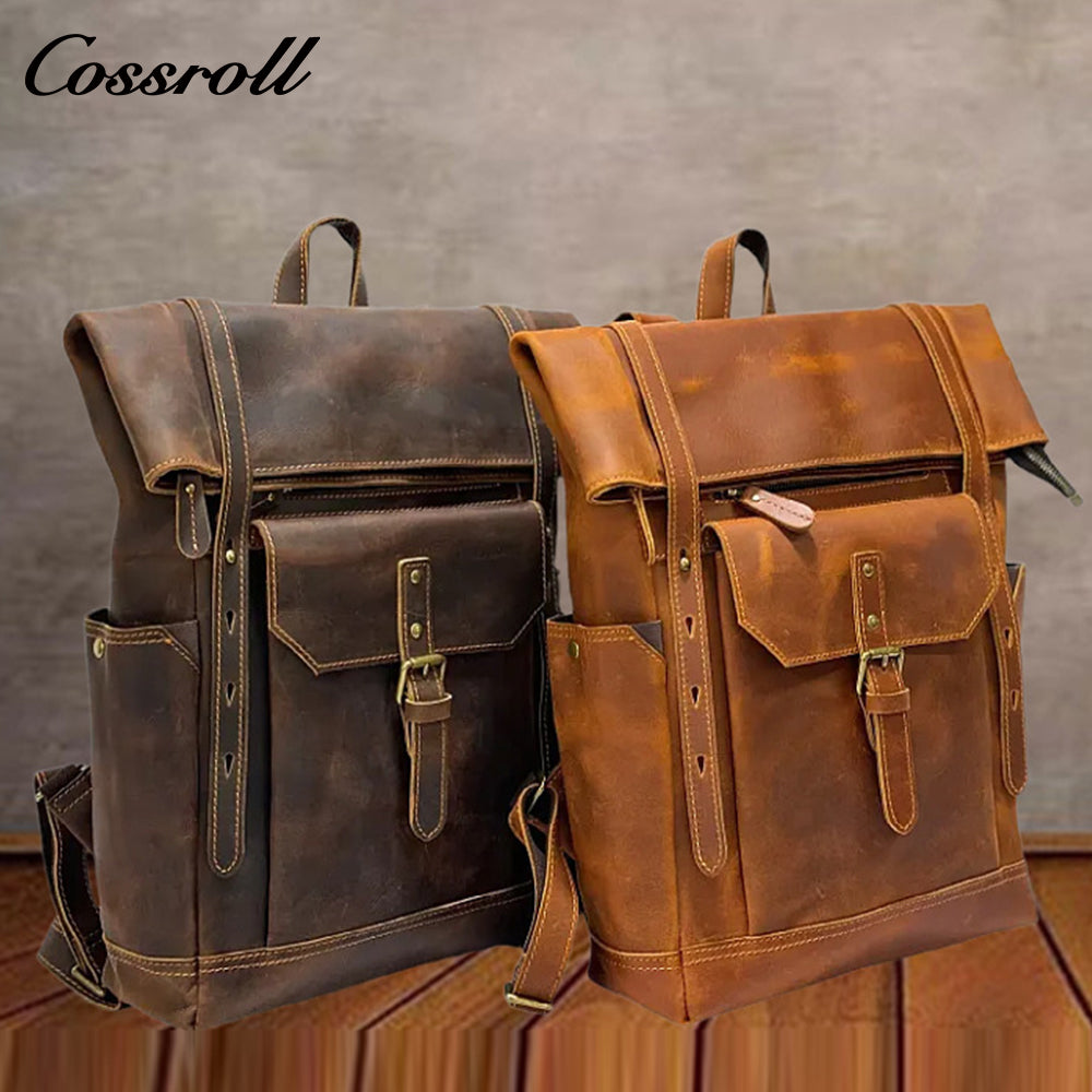 Vintage Crazy Horse Leather Backpack for Men, Genuine Leather Large Capacity Travel Backpack