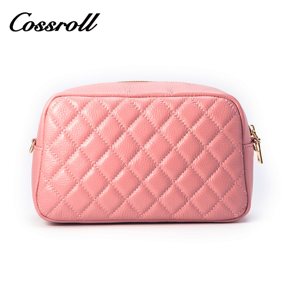 Textured Pink Messenger Bag Embroidered Pattern Classic Leather Handbag