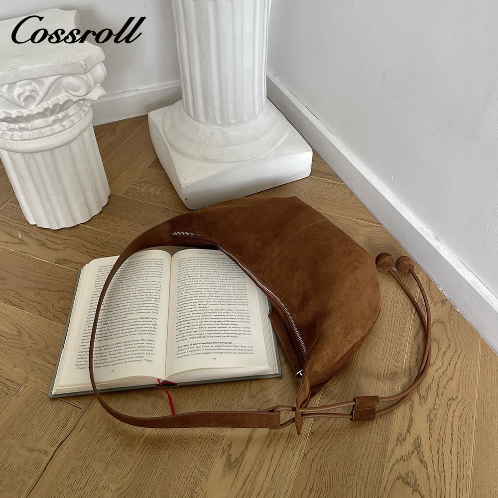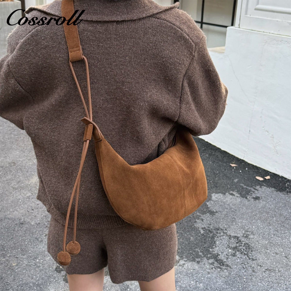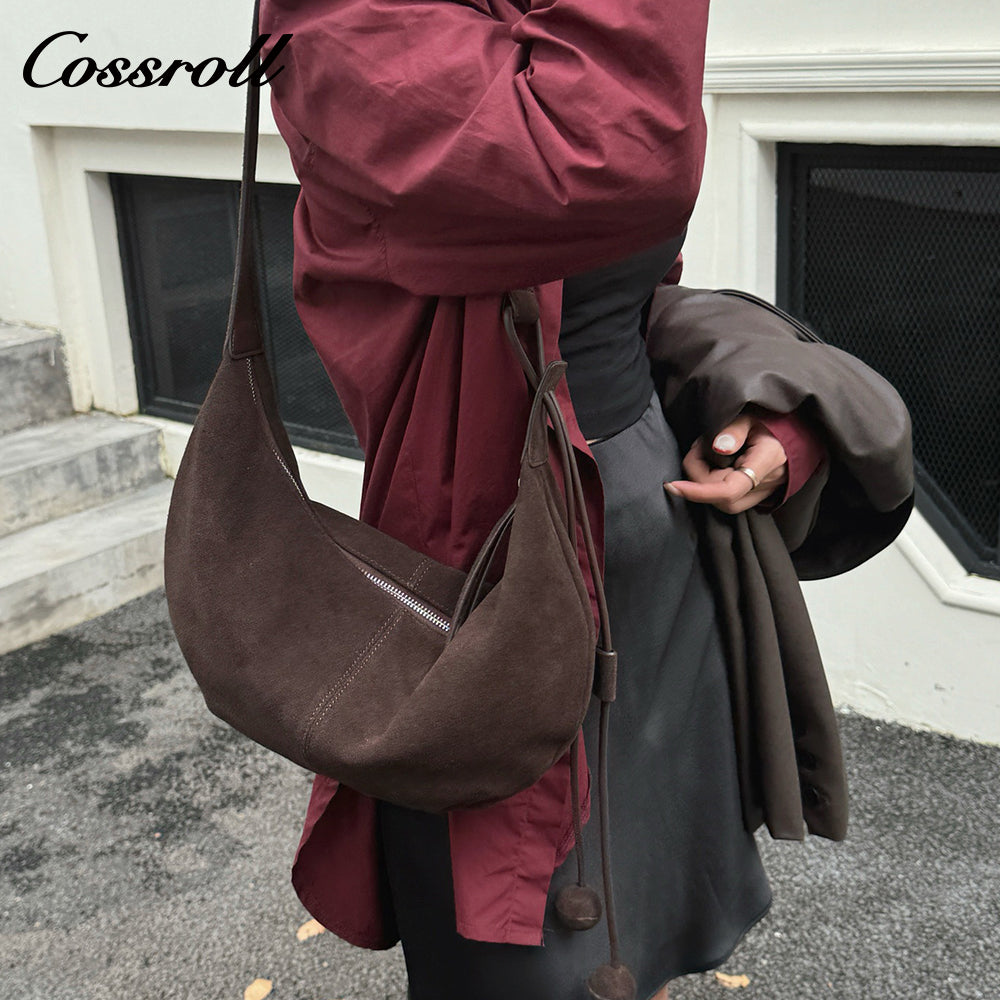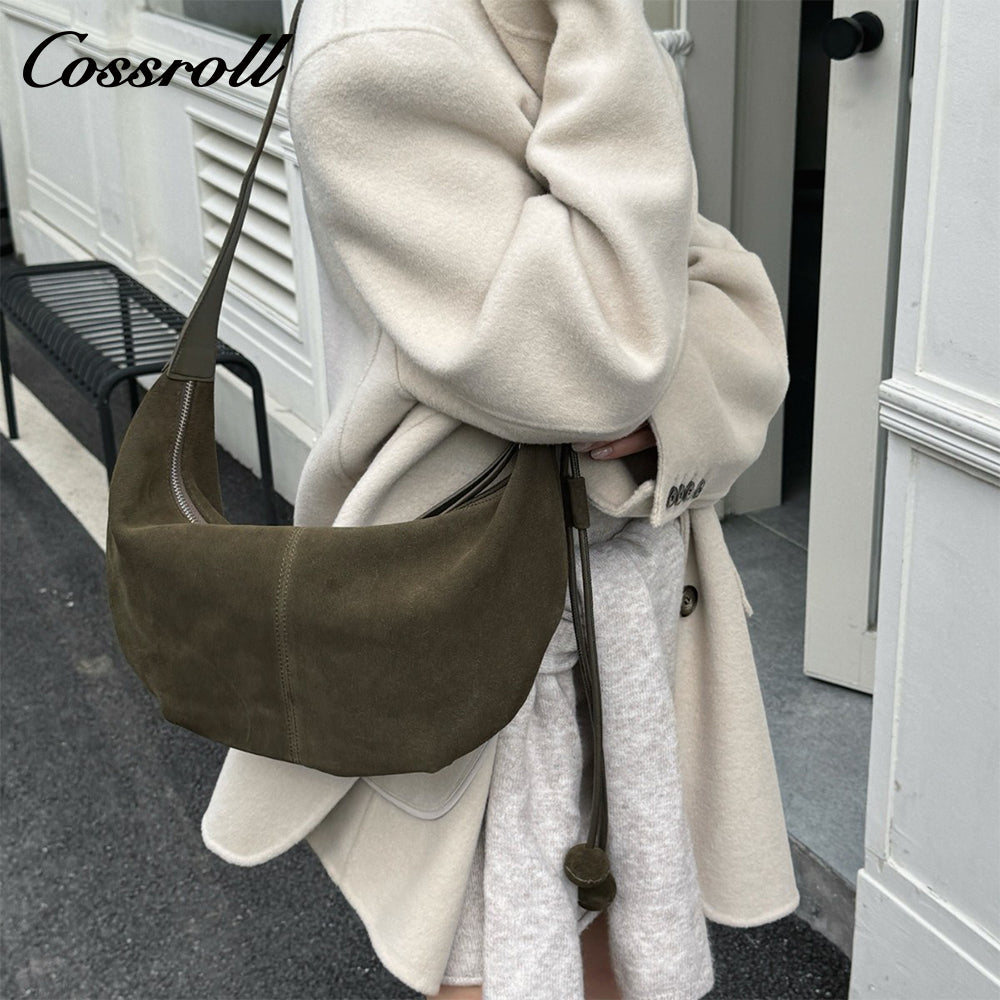 Cowhide Underarm Women's Crossbody Bag, High-End Fashion Suede Tote Bag
