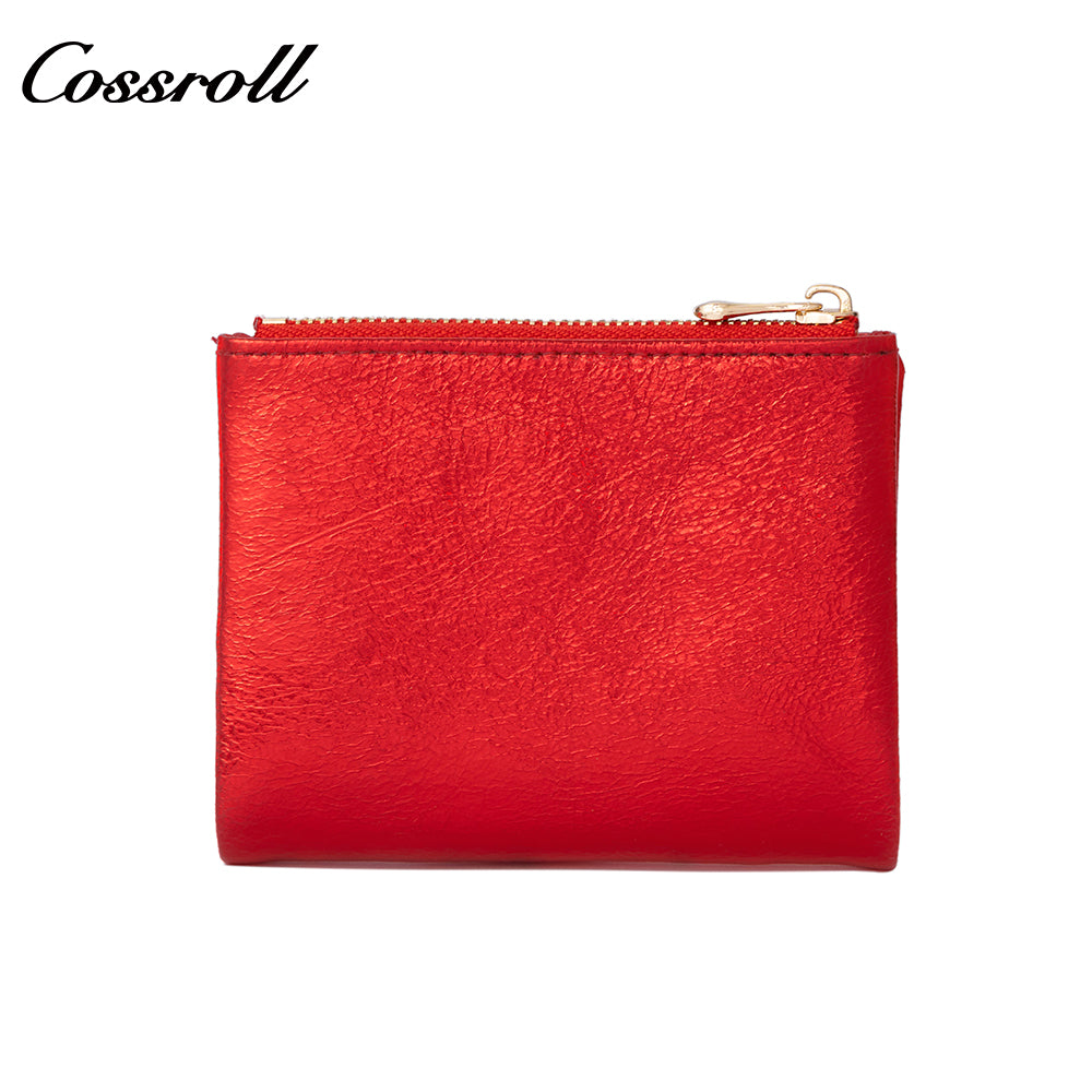 Women's genuine leather short wallet, European and American style, oil wax leather, fashionable billfold
