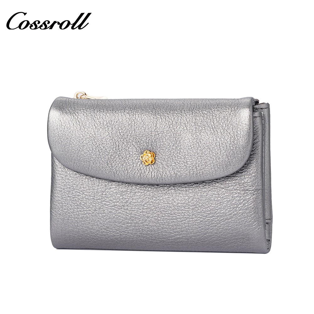 Cossroll women's cross-border genuine leather wallet, with gold floral decoration, retro glossy large capacity